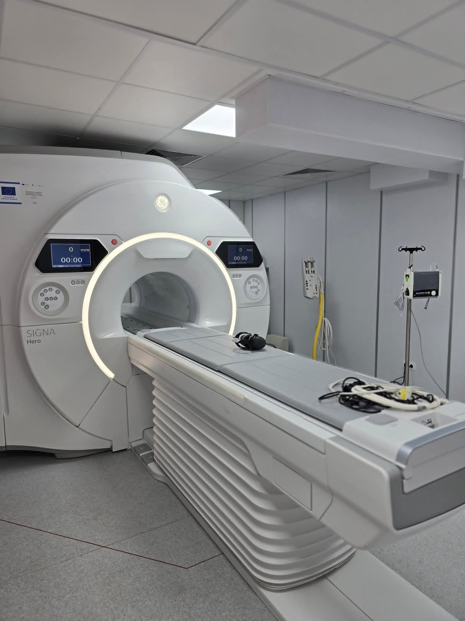 Scanerul de imagistică prin rezonanță magnetică 3.0 Tesla, Signa Hero, este echipat cu tehnologie de ultimă generație, inclusiv inteligență artificială AIR Recon DL, care permite obținerea unor imagini de înaltă rezoluție într-un timp mai scurt și oferă confort crescut pentru pacienți.