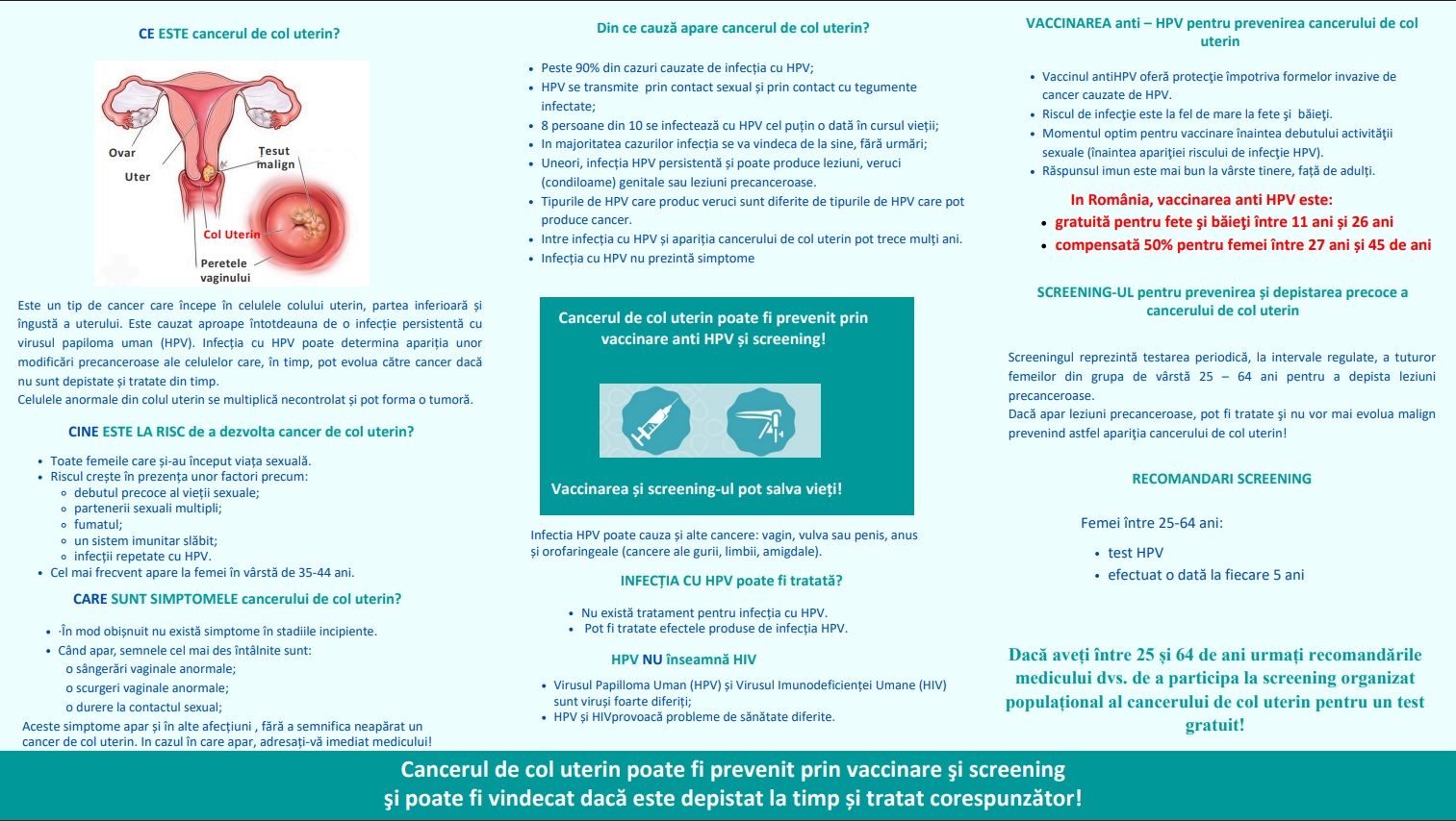 Vaccinul HPV reduce incidenţa cancerului de col uterin şi a altor afecţiuni oncologice și nononcologice determinate de infecșia cu acest virus. Detalii pe www.infohpv.ro.