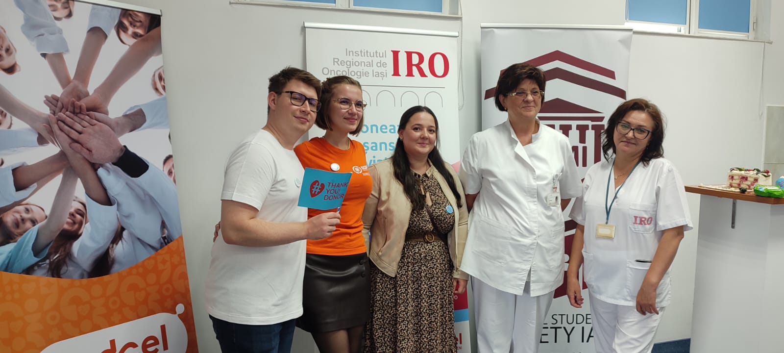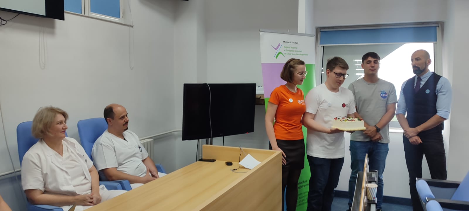 Echipele medicale de la Centrul Donatorilor Voluntari de Celule Stem Hematopietice și de la Compartimentul de Transplant din cadrul Institutului Regional de Oncologie (IRO) Iași și studenți de la Societatea Studentilor Medicinisti Iași le-au pregătit o surpriză dulce - un tort - donatorilor de celule stem, în semn de mulțumire pentru că au ales să ofere o șansă la viață pacienților cu boli hematologice oncologice.