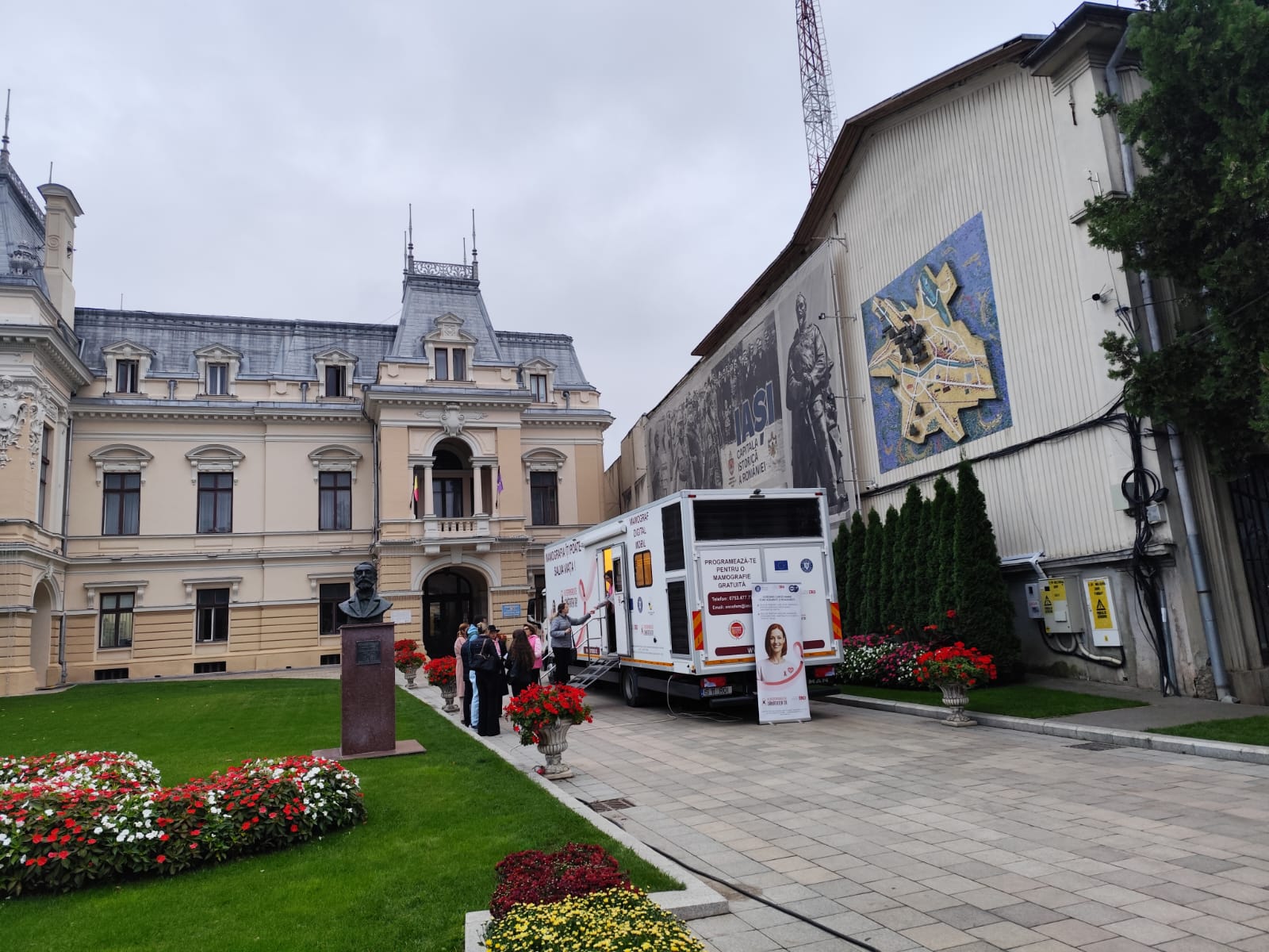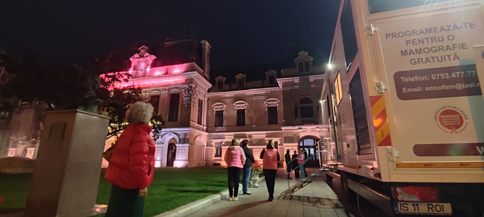 Unitatea Mobilă de screening de cancer mamar de la Institutul Regional de Oncologie Iași IRO Iași a staționat joi seară în fața Primăriei Iași pentru a le oferi ocazia femeilor să facă mamografie gratuită, cu ocazia zilei Mondiale de Luptă Împotriva Cancerului la Sân, marcată la 1 octombrie.