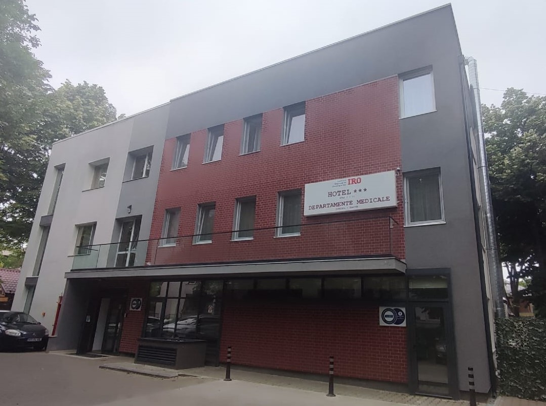 Pacienții care au nevoie de radioterapie și care sunt departe de casă se pot caza gratuit la Hotelul IRO, prima unitate medicală din țară cu unitate de cazare pentru proprii bolnavi, deschis în 2016. Cele 29 de camere cu unul, două sau trei paturi se află la etajele 1 și 2 ale hotelului și au toaletă proprie, televizor, frigider și mobilier precum o cameră de hotel. La fiecare etaj, pacienții au la dispoziție și sală de mese cu bucătărie. Hotelul este în cartierul Tătărași, pe strada Ion Creangă, nr. 5 bis și oferă condiții de 3 stele. Clădirea are o suprafață de 1450 de metri, trei niveluri supraterane ( parter, etajele 1 și 2) și două subterane (etajele -1 și -2). Buncărul din subteran, unde se află cel mai nou accelarator de particule din institut folosit în radioterapie, a fost deschis în octombrie 2022.