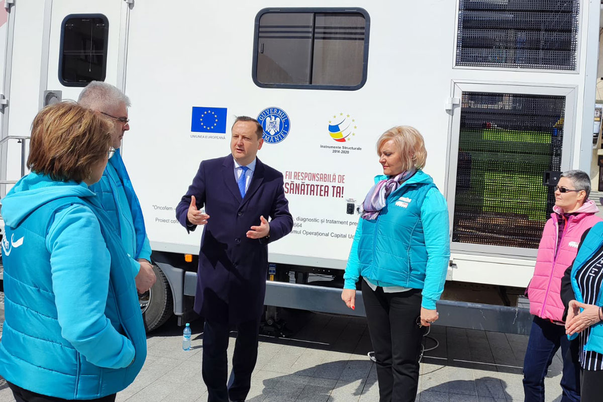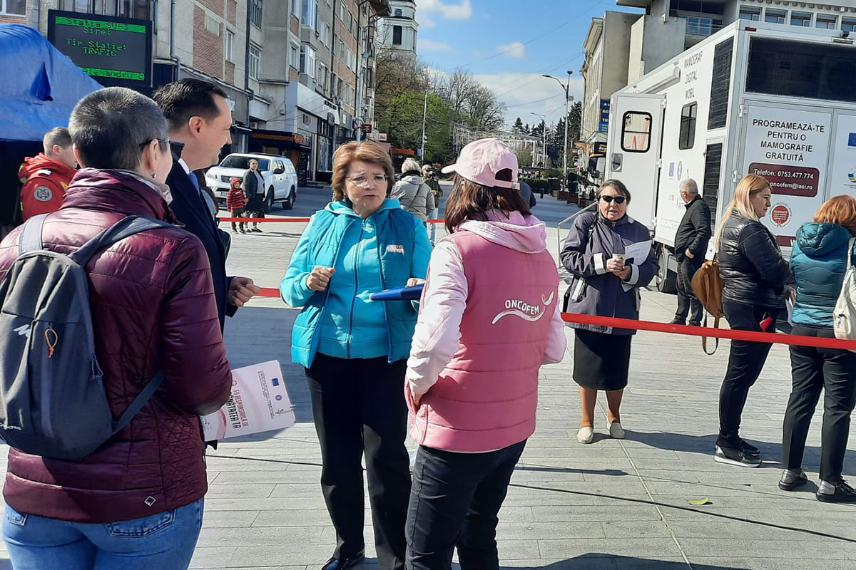 Reprezentanți ai IRO Iași, ai Fundației Enable, autorități județene și locale au participat, în data de 27 aprilie 2023, la evenimentul de promovare a screening-ului pentru cancerul mamar și cancerul de col uterin, care a avut loc pe esplanada din fața Casei de Cultură a Muncipiului Suceava.